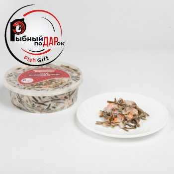 Sea kale salad with pink salmon is a very healthy product. Seaweed primarily replenishes iodine deficiency in the body. The salad will surprise you with its unique taste.